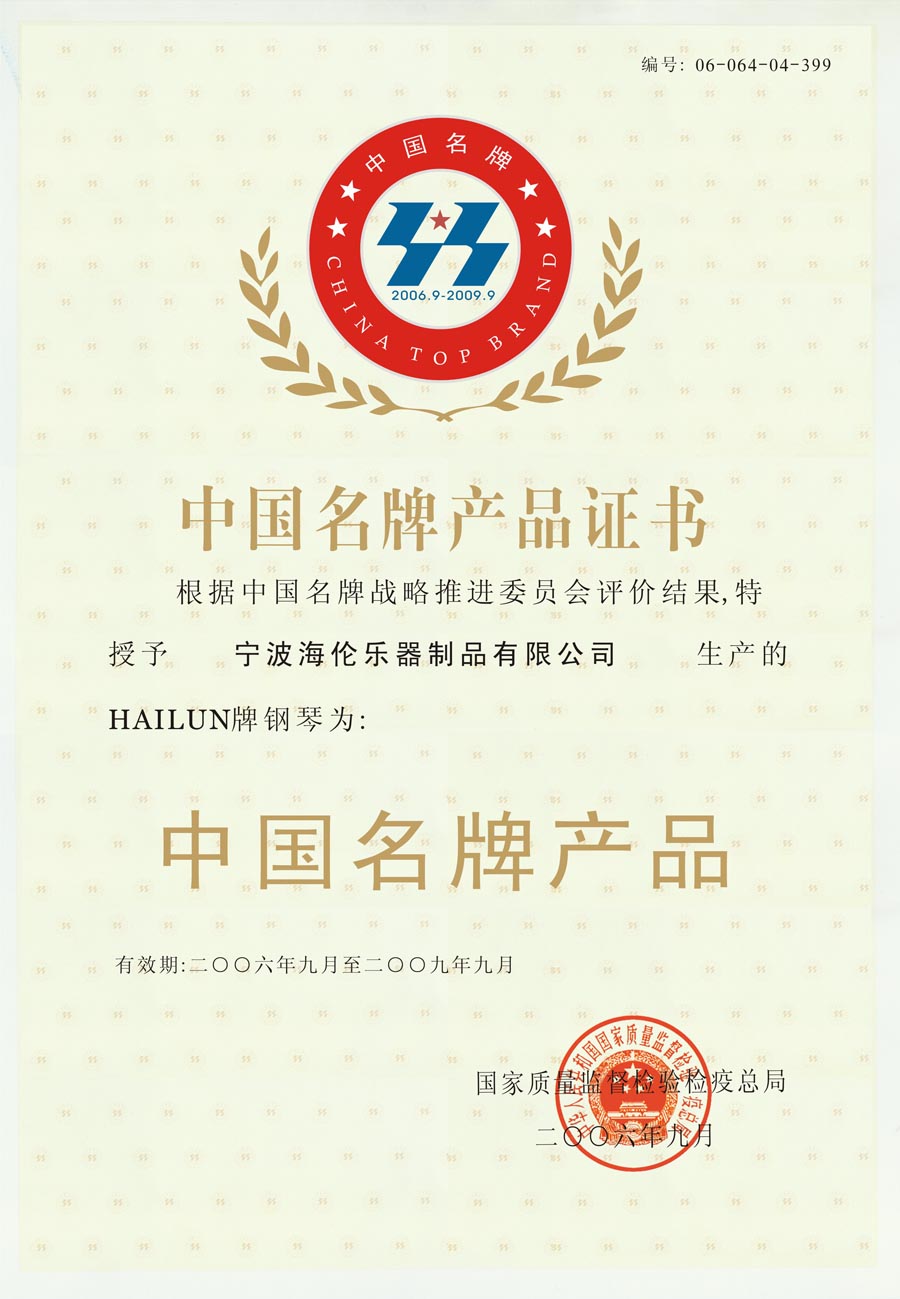 In 2006, the European Chinese Association held a peace celebration: HAILUN Company was once again chosen and featured in a performance at the Golden Concert Hall in Vienna. This event was made more significant because it was the first time a Chinese made piano was featured in the Viennese Golden Concert Hall. That same year, the HAILUN piano receives an award "China's Top Brand Name". This award, presented only once every three years, has only been awarded to three other manufacturers of China's 200 piano producing companies'. This marks the first time that a privately held non-government company has been awarded this very distinguished honor.